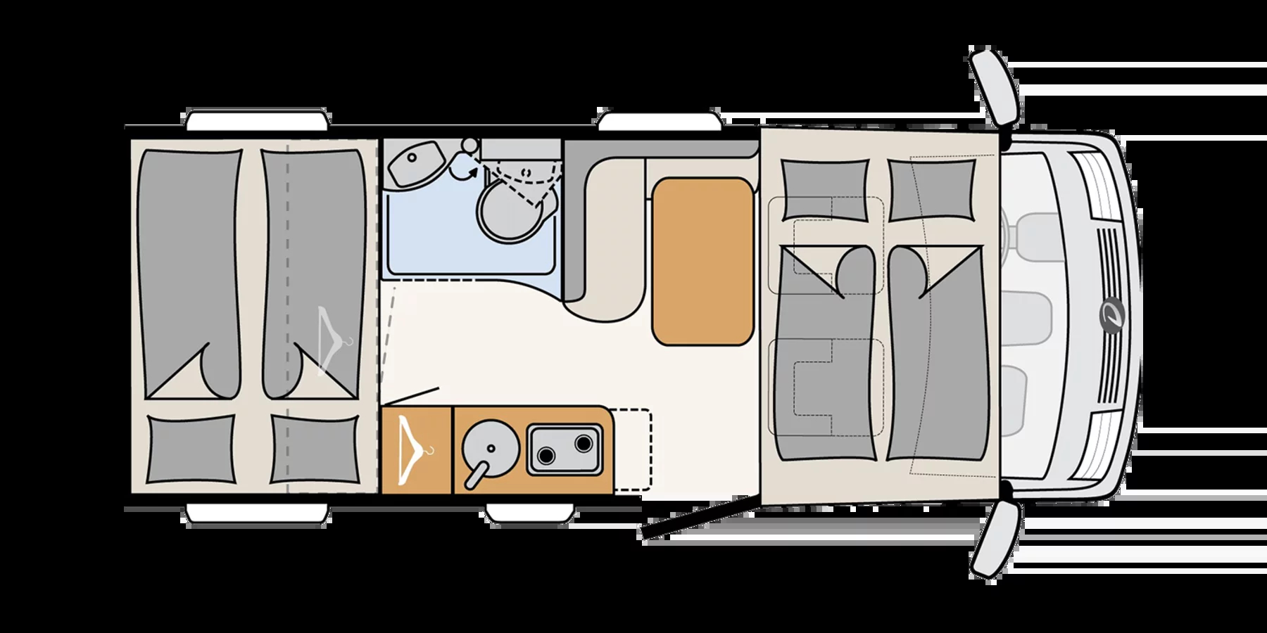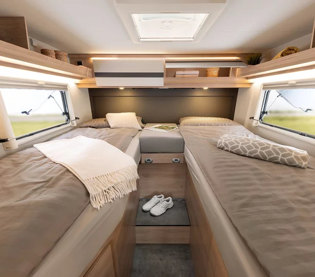 Sypialnia tylna: łóżko poprzeczne 200 × 145 cm z 7-strefowym materacem 150 mm