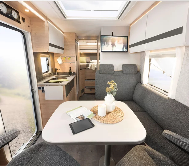 Dethleffs Globebus I 4 to w pełni zintegrowany, kompaktowy kamper, który oferuje więcej przestrzeni niż jego krótszy brat I 1, zachowując jednocześnie wymiary sprzyjające łatwemu prowadzeniu. Dzięki długości 6,60 m i szerokości 2,20 m zapewnia komfort podróżowania w układzie wnętrza z oddzielnymi łóżkami w tylnej części oraz przestronnym salonem.
