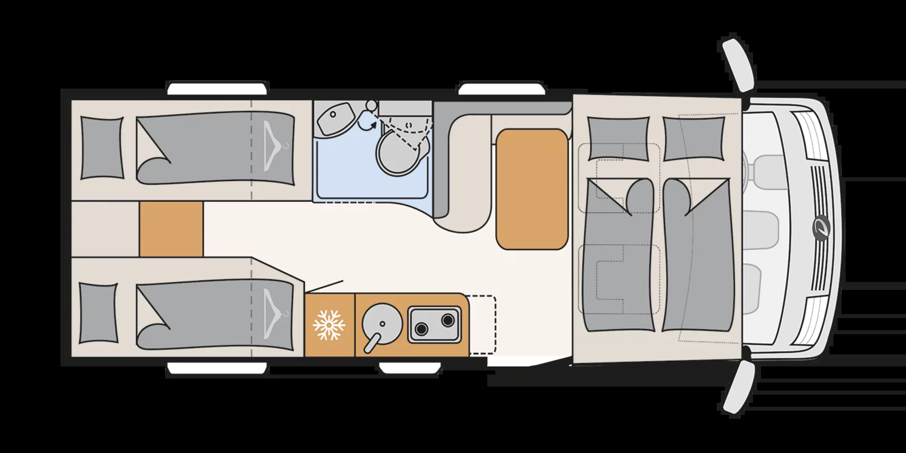 Globebus I 4 to propozycja dla tych, którzy oczekują od kampera połączenia kompaktowych wymiarów z przestronnym i funkcjonalnym wnętrzem. Jego przemyślany układ, wygodne strefy wypoczynku oraz nowoczesne rozwiązania techniczne sprawiają, że każda podróż staje się prawdziwą przyjemnością – zarówno na długich trasach, jak i podczas krótkich weekendowych wypadów.