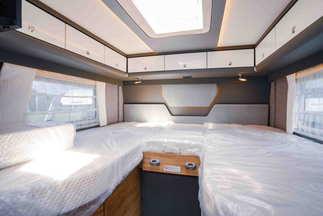 - Zbiorniki na wodę świeżą i szarą zamontowane w podwójnej podłodze (powierzchnia izolowana)