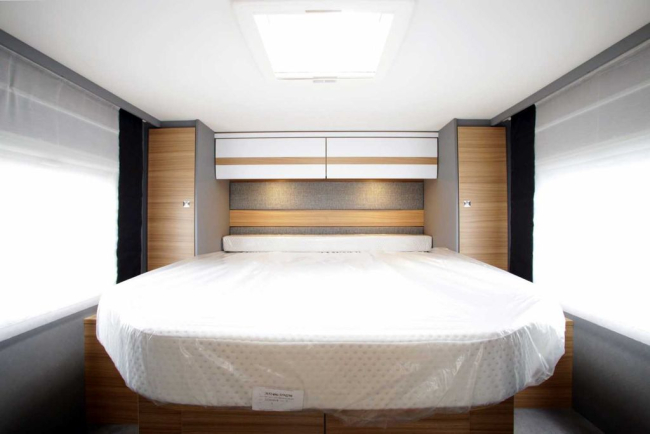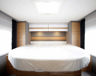 - Elektryczne składane łóżko nad siedziskiem („Panoramiczny dach 70x50 cm w części mieszkalnej” jest połączona z opcją „Elektrycznie podnoszone łóżko nad siedziskiem” w części sypialnej)