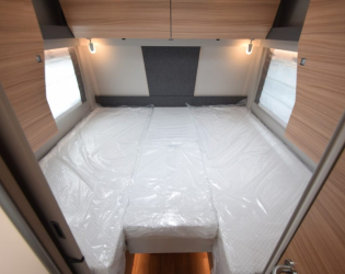 - Panoramiczny świetlik 40x40 cm z moskitierą i roletami zaciemniającymi nad opuszczanym łóżkiem