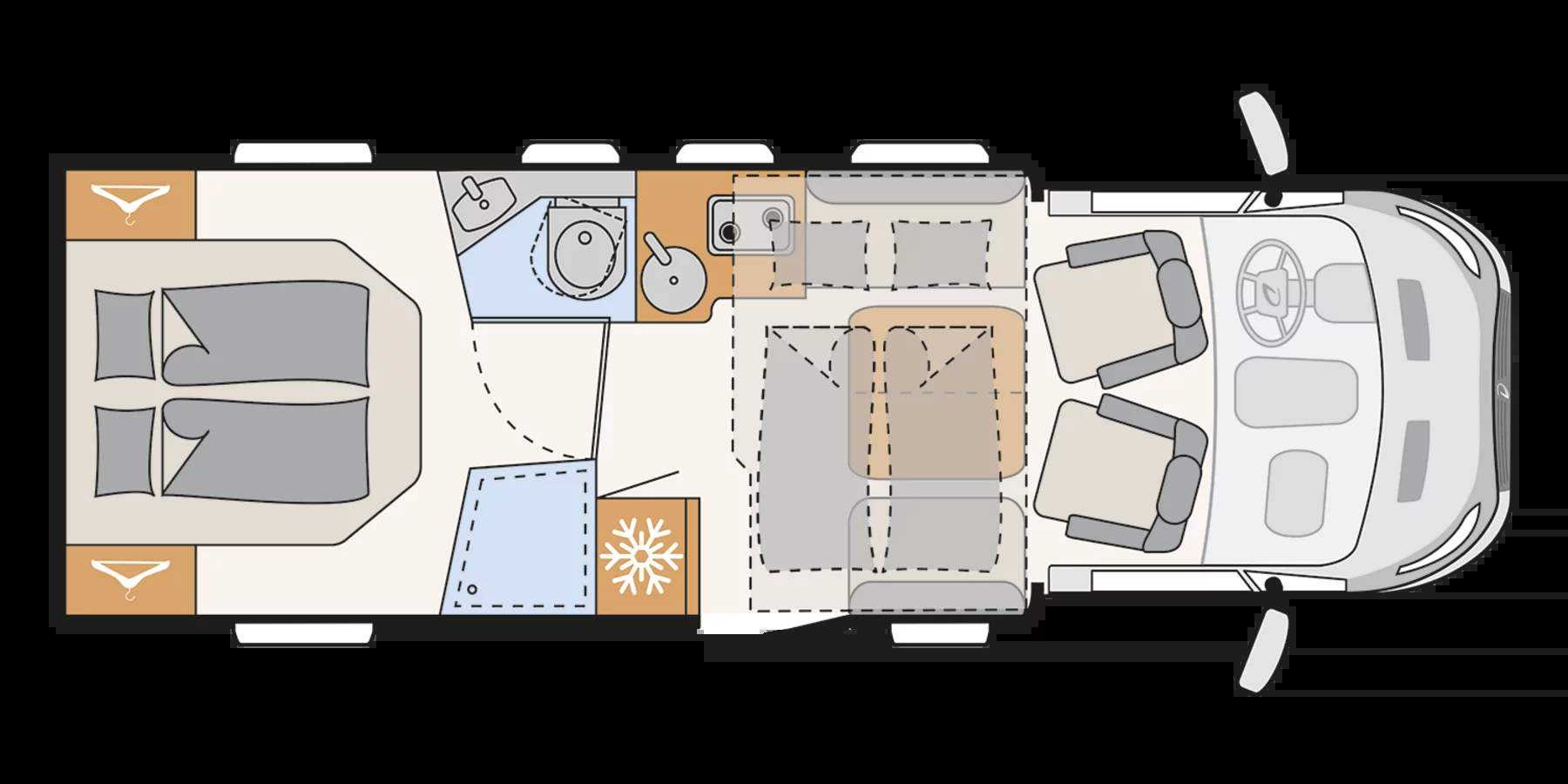 Dethleffs Just Go T 7055 DBL to funkcjonalny kamper dla rodzin i par, które cenią wygodę oraz elastyczność układu wnętrza. Dzięki komfortowej sypialni, dużemu salonowi i niezawodnemu ogrzewaniu, model ten doskonale sprawdzi się w podróży przez cały rok.