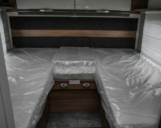 - Pakiet Family („Panoramiczna maska dachowa 70x50 cm w części mieszkalnej” jest połączona z opcją „Elektrycznie podnoszone łóżko nad grupą siedzeń” w części sypialnej.)