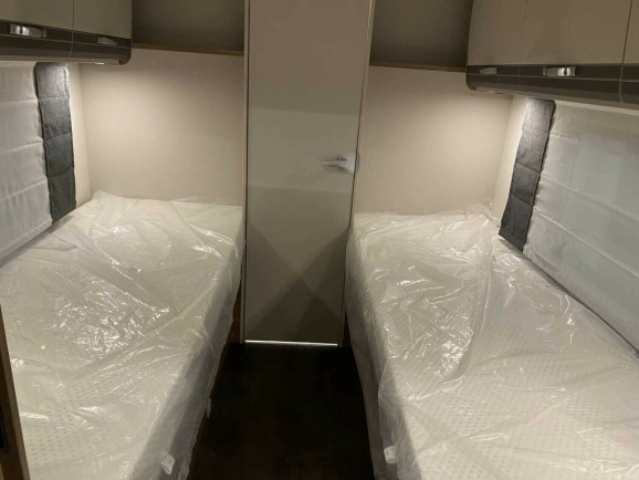 - Pakiet Family („Panoramiczna maska dachowa 70x50 cm w części mieszkalnej” jest połączona z opcją „Elektrycznie podnoszone łóżko nad grupą siedzeń” w części sypialnej.)