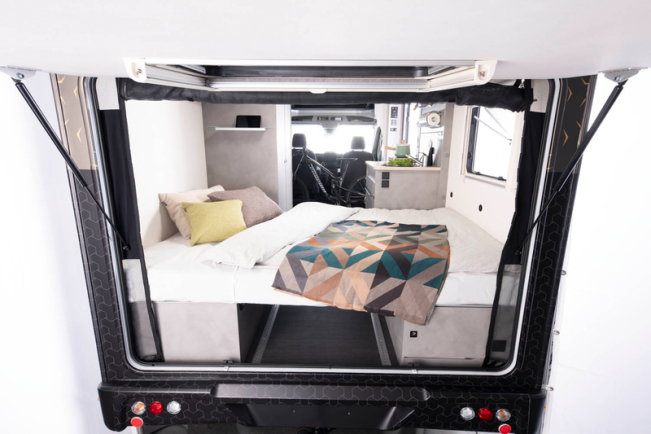 - Duża część wypoczynkowa z tyłu, którą można przekształcić w duże podwójne łóżko