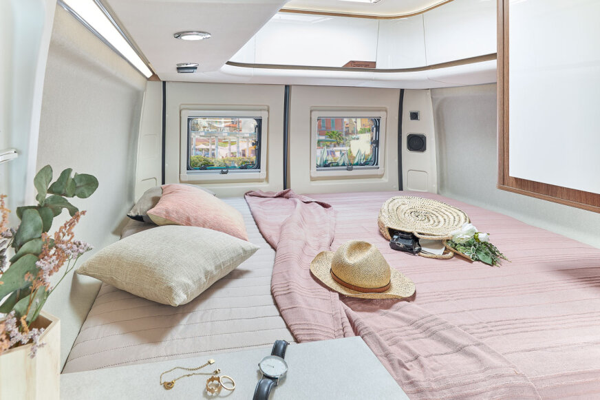 - 3-punktowe chowane pasy bezpieczeństwa (kabina i część mieszkalna) - standard