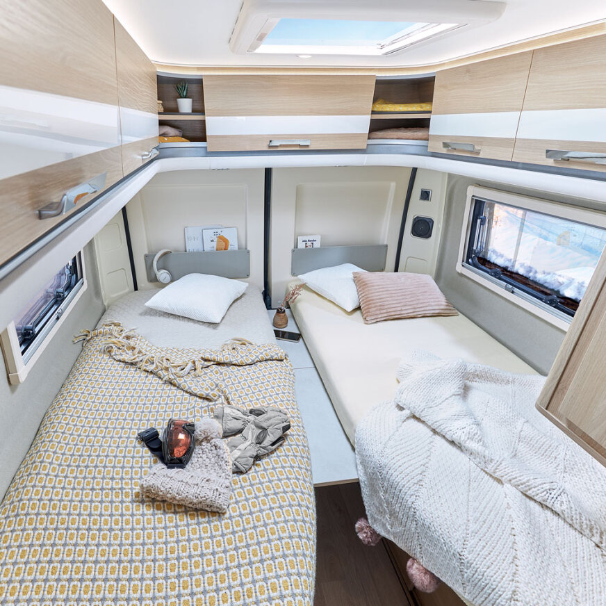 - Łóżko stałe z aluminiową ramą podstawy i materacem piankowym BULTEX® (CAP COAST i CAP LAND: tylko pojedyncze podkładki zawieszane do łóżka)