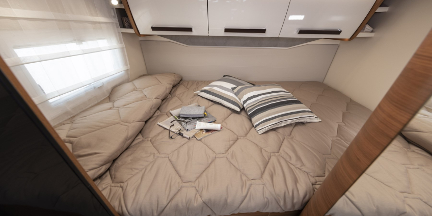 - Dzięki podwójnym szybom, roletom i moskitierom oraz trzem świetlikom umieszczonym nad częścią jadalną oraz w środkowej i tylnej części pojazdu, kabina pasażerska jest dobrze oświetlona i zawsze dobrze wentylowana.