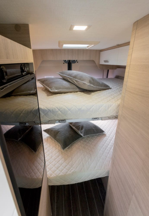 - Podnoszone i zdejmowane podstawy łóżek (E-Van 5, E-Van DUO) do zarządzania przestrzenią bagażową w razie potrzeby
