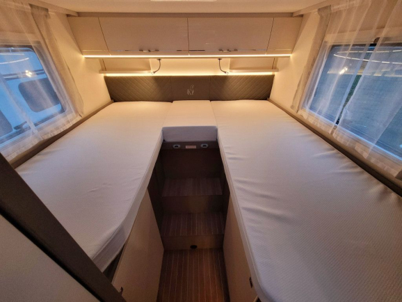 - Łóżko podnoszone elektrycznie (W przypadku opcjonalnego podnoszonego łóżka świetlik dachowy 50x70 cm zostaje zastąpiony świetlikiem dachowym 40x40 cm)