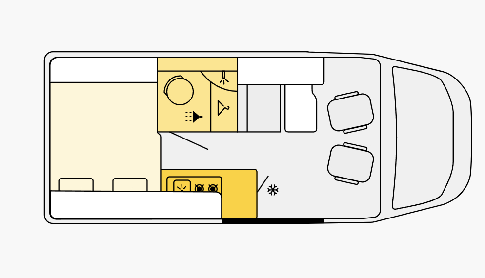 - Praktyczna kuchnia: Kompaktowa, ale w pełni wyposażona kuchnia pozwala na przygotowywanie posiłków w trakcie podróży.