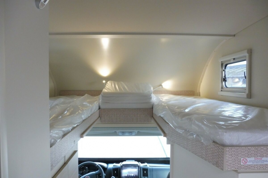 - 140-litrowy zbiornik świeżej wody izolowany i ogrzewany w środku (Pojemność w pozycji do jazdy 25 l. Jeśli jest wystarczająca ilość ładunku, zbiornik na wodę o zaznaczonej pojemności 25 l można napełnić do rzeczywistej pojemności 140 l)
