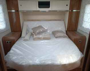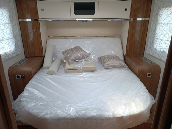 • Umieszczone centralnie łoże typu queen z tyłu z przegrodą na bieliznę
