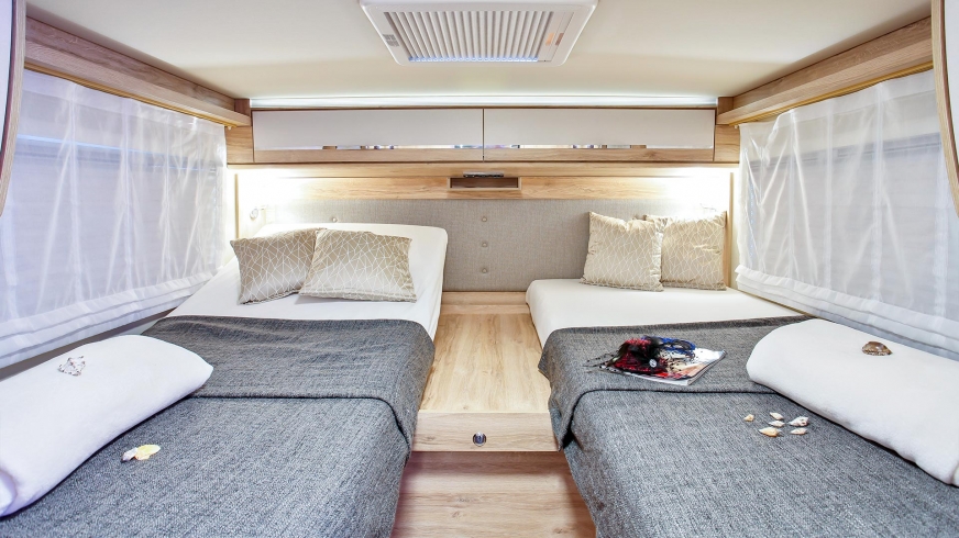 - Rzuty z pojedynczym łóżkiem z regulowaną ramą łóżka i wysuwaną częścią do przekształcenia w podwójne łóżko