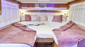 Istnieje wiele niskoprofilowych kamperów z podnoszonymi łóżkami. Koncepcja pojazdu Profila RS uwzględnia jednak zapotrzebowanie na więcej miejsca do przechowywania, a także na bardziej kompaktową nadbudowę. Profila RS to jedyny crossover kamper oferujący praktyczną piwnicę, przestronną przestrzeń mieszkalną i wygodną kondygnację dachową. Projekt charakteryzuje się eleganckim zakrzywionym dachem z TWS, który harmonijnie łączy się z nadbudową. Wewnątrz domku mobilnego imponuje poczucie dużej przestrzeni, powstałe głównie dzięki „zatopionemu” podnoszonemu łóżku zintegrowanemu z sufitem. Dzięki lekkiej górnej podłodze i lżejszemu łóżku, Profila RS może pomieścić maksymalnie 4 osoby w klasie 3,5 tony.