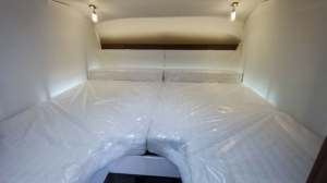 - Centralne przedłużenie łóżka dla NEO między 2 tylnymi łóżkami w układzie GD (z dodatkową częścią materaca), z drabinką dla łatwiejszego dostępu do łóżek.