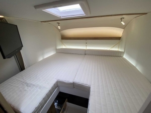 Funkcja łatwego ładowania dla grupy siedzeń z poduszką (mechanizm składania dla większej ilości miejsca do przechowywania), wysuwany zwijacz kabla w oddzielnym schowku, szuflada na butlę z gazem, tylna szafka. Dla Neo GDK. Mechanizm składania szafy pod łóżkiem GD po prawej stronie. - Pakiet Comfort (Miracle White)