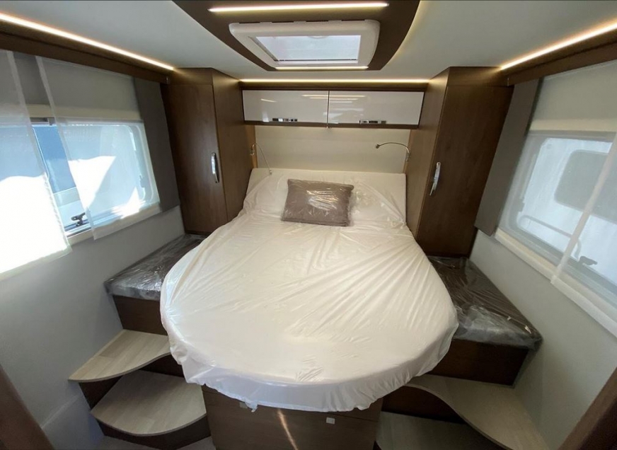 • Klimatyzacja Dometic 2200 Freshlight zamiast standardowej klimatyzacji PLATIN (Dometic Freshjet 1700). Wydajność chłodnicza 2200 W + wydajność grzewcza 2700 W (tylko dla PLATIN). Klimatyzatora można używać tylko wtedy, gdy pojazd jest podłączony do sieci (nie podczas podróży). Uwaga: wentylator klimatyzatora może wystawać przez sąsiednie drzwi.