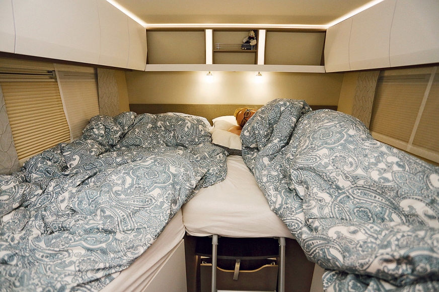 • Ogrzewanie ciepłą wodą Alde Compact 3020 HE (przestrzeń w szafie jest ograniczona, wymiary łóżek mogą ulec zmianie!)