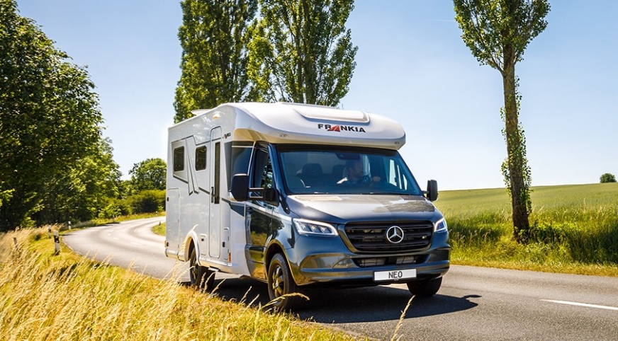 Poczuj wyjątkową lekkość „Gwiazdy” – w FRANKIA M-Line NEO. Ta innowacyjna koncepcja pojazdu we współpracy z Mercedes-Benz, oparta na niskiej ramie AL-KO wyprodukowanej specjalnie dla FRANKI, pozwala doświadczyć wyjątkowego połączenia lekkości, przestronności, nowoczesnego wystroju wnętrza i niezrównanej ładowności – przy całkowitej masie zaledwie 3,5 t .