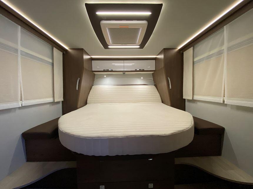 Łóżka pojedyncze można łatwo przekształcić w opcjonalne łóżko podwójne, aby spełnić Twoje potrzeby spania. Liczne szuflady i szafki zapewniają dużo miejsca do przechowywania całego wakacyjnego sprzętu. Ciesz się maksymalnym relaksem w zaskakująco dużej grupie siedzeń i w ciągu kilku sekund zamień nowe komfortowe fotele FRANKIA w kabinie kierowcy w fotele do salonu.