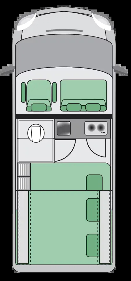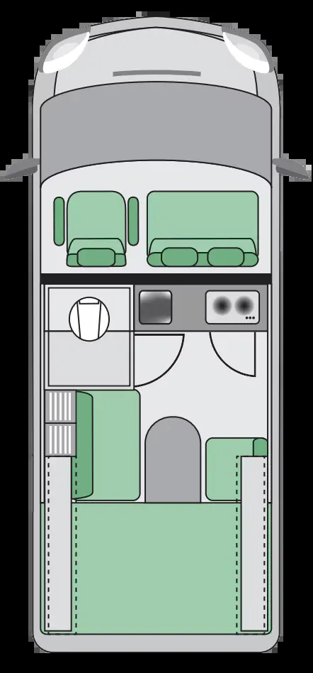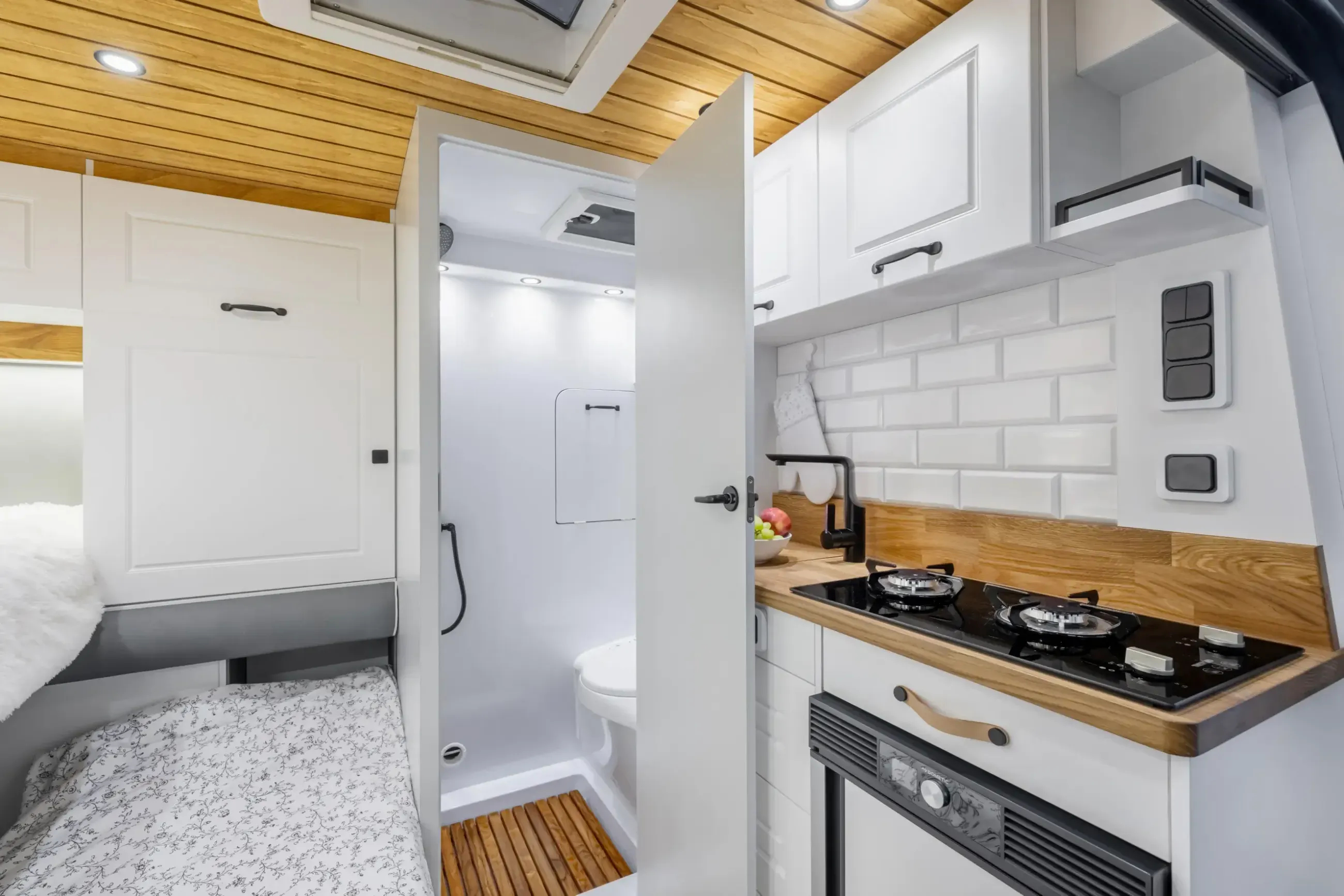 Freedo 541 to wyjątkowo kompaktowy kamper-van, idealny dla osób szukających maksymalnej mobilności, prostoty i funkcjonalności. Oferuje pełne wyposażenie kamperowe w bardzo małej formie — kuchnię, łazienkę, duże łóżko i ogrzewanie — a dzięki niewielkim rozmiarom jest łatwy w prowadzeniu i parkowaniu.