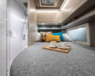 - Obszerne schowki górne, szafa na ubrania, głębokie szuflady, 90-cio litrowa lodówka i pojemny schowek pod łóżkiem, w połączeniu ze stosunkowo dużym bagażnikiem, zapewniają wystarczającą ilość miejsca na rzeczy potrzebne w podróży.