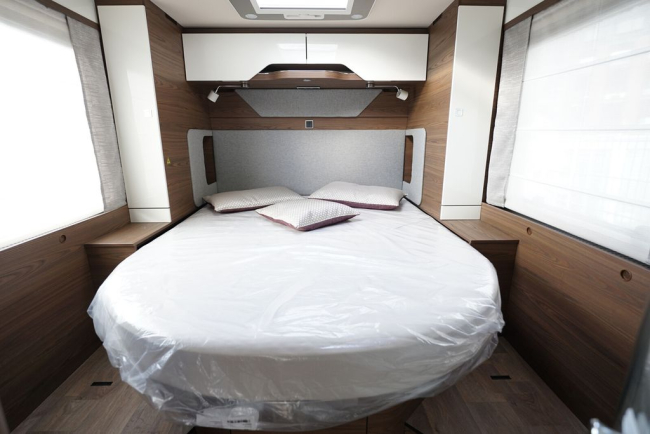 - Szafki podsufitowe zamiast opuszczanego łóżka z przodu (Schowki z przodu tylko w połączeniu z roletami elektrycznymi w kabinie)