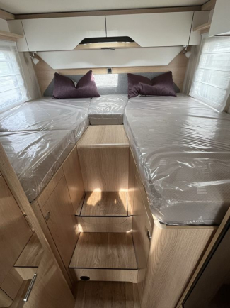 - Łóżko opuszczane można ręcznie obniżyć i przekształcić w łóżko pojedyncze (Możliwe tylko w połączeniu z systemem spania z ramą sprężynowo-płytową do łóżka z przodu)