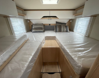 - Łóżko opuszczane można ręcznie obniżyć i przekształcić w łóżko pojedyncze (Możliwe tylko w połączeniu z systemem spania z ramą sprężynowo-płytową do łóżka z przodu)