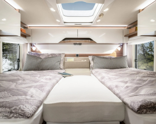 * 4 poziomy w części dziennej (sufit, blat, podłoga i funkcjonalne oświetlenie). Nastrojowe oświetlenie na suficie w części dziennej/sypialnej. Zawieszone oświetlenie w części dziennej. Temperaturę światła można regulować w obszarze sufitu w części dziennej/sypialnej. Wszystkie oprawy sterowane za pomocą przycisków można również ściemniać. Ponadto dostępna jest funkcja wyłączania wszystkich świateł, która wyłącza wszystkie światła wewnątrz pojazdu podczas snu.