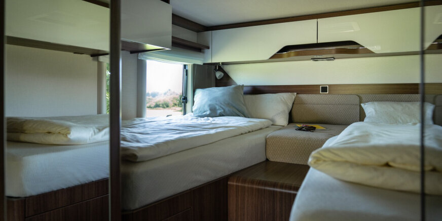 - Wywietrznik dachowy Panorama 80 x 50 cm, podwójnie przeszklony z oświetleniem LED nad tylnym łóżkiem