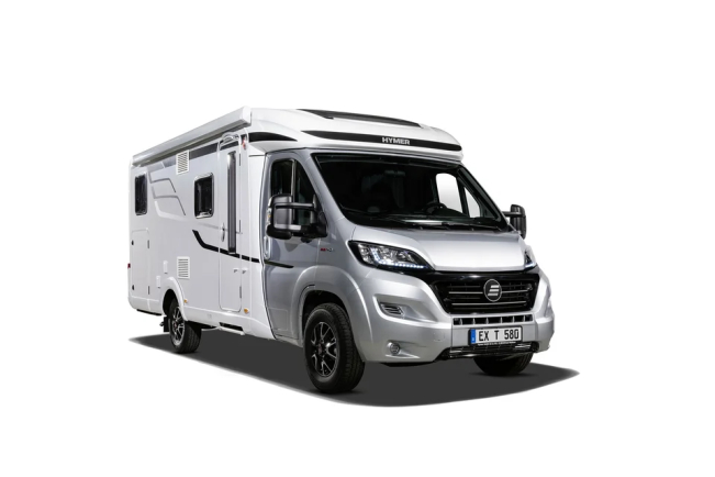- Multimedialny system nawigacji z 9-calowym ekranem dotykowym, obejmującym oprogramowanie dla samochodów kempingowych, DAB+, Apple Car Play, Google Android Auto, kamerę cofania/serwisową, funkcję lusterka wstecznego i HYMER Smart Control (Smart Control: Proste sprawdzanie stanu poziomu wody i napięcia akumulatora za pośrednictwem jednostki sterującej urządzenia nawigacyjnego. W zależności od typu smartfona i wersji oprogramowania zakres korzystania ze smartfona może się różnić. Pełna integracja smartfona z systemem multimedialnym (np. Apple Car Play, Google Android Auto) może być zagwarantowana tylko w przypadku zamówienia fabrycznego systemu nawigacji multimedialnej 9". Podczas modernizacji nie jest możliwa integracja ze smartfonem. Opcja obejmuje automatyczne przełączanie radia z kabiny kierowcy na akumulator zabudowy)