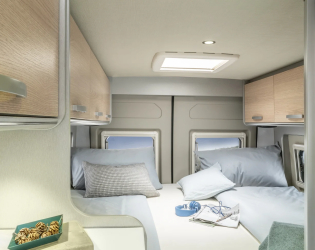 - Dach sypialny w kolorze białym (podwójne łóżko Maxi z systemem Sleeping Comfort) (Dach sypialny i przebudowa łóżka poprzecznego dla grupy siedzeń z dodatkową poduszką nie mogą być używane jednocześnie)
