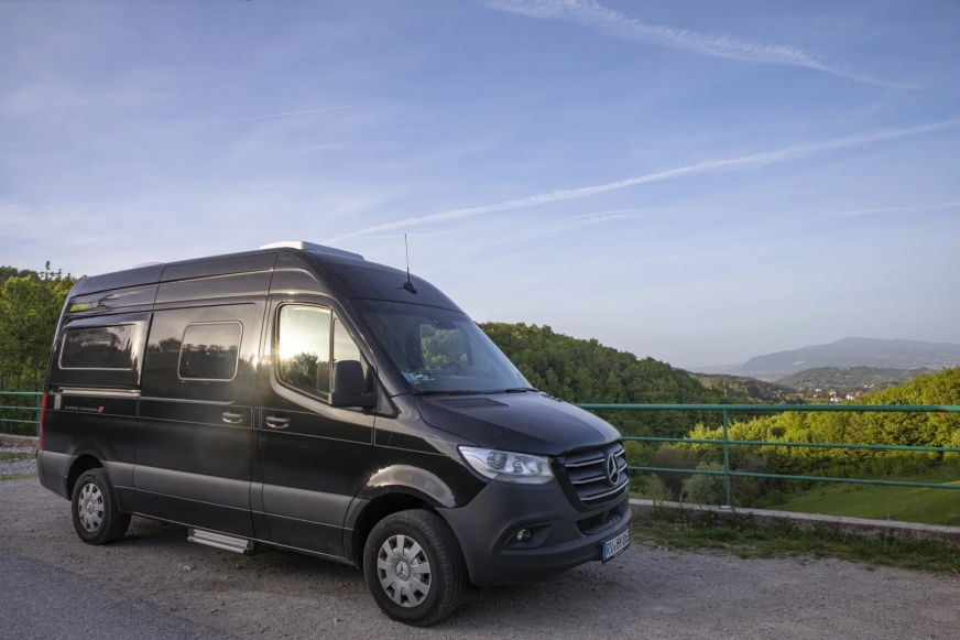 - Okno otwierane z tyłu po lewej stronie w kierunku jazdy wraz z roletą zaciemniającą i moskitierą