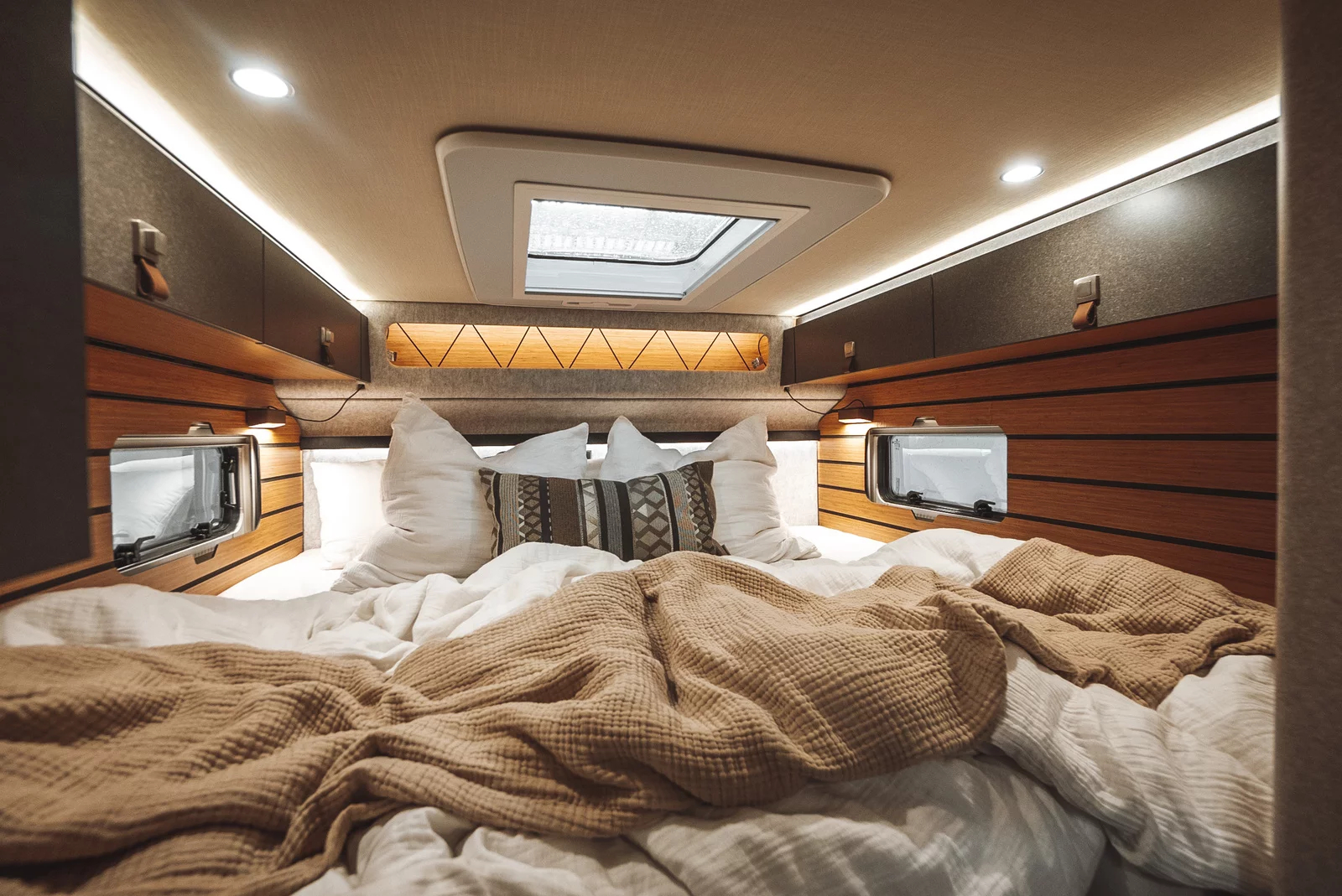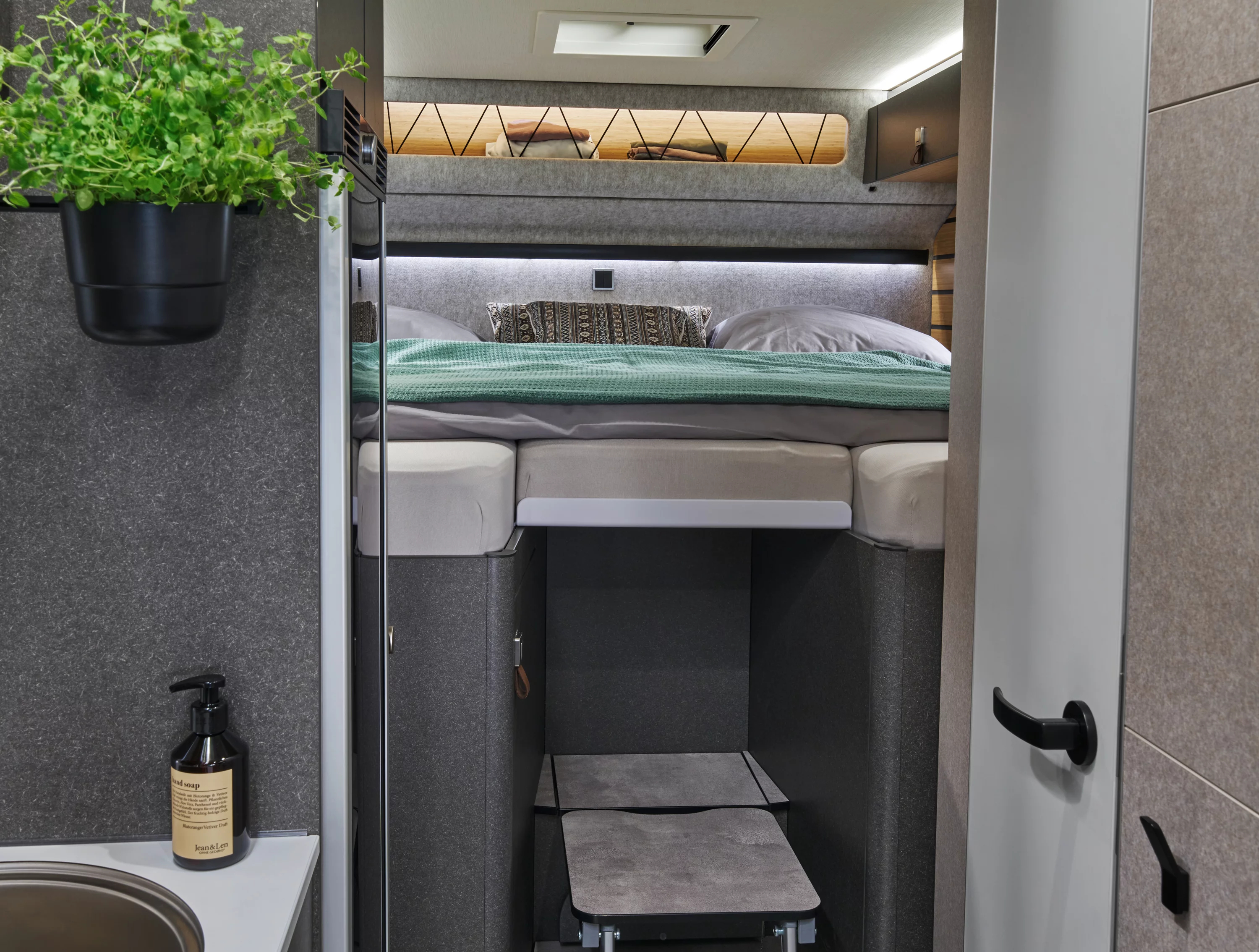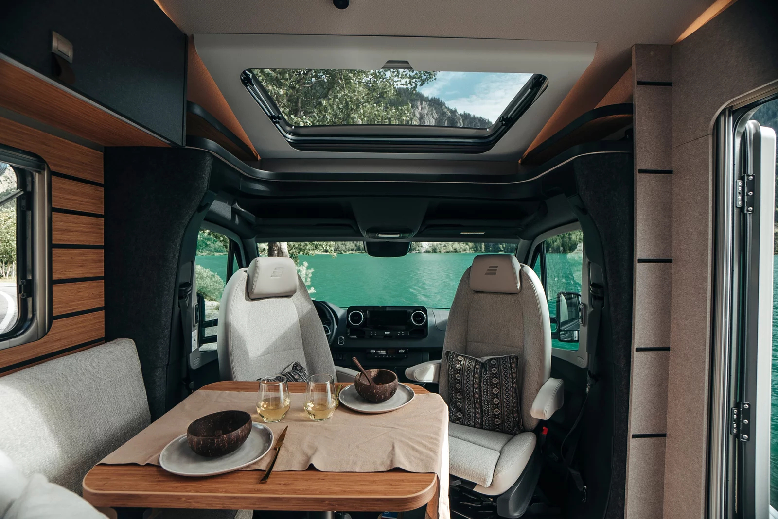 Podwozie: Mercedes-Benz Sprinter z konstrukcją SLC (Super Light Chassis) i podwójną podłogą, zapewniającą płaską powierzchnię mieszkalną oraz dodatkowe schowki.
