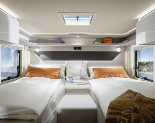 - Zbiornik świeżej wody o pojemności 110 l, izolowany i podgrzewany (20 l w pozycji do jazdy)