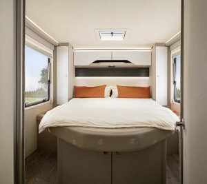 - Opuszczane podwójne łóżko nad częścią wypoczynkową z materacem z zimnej pianki (wersja elektryczna)