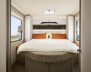 HYMER T-Class S jest pod wieloma względami pierwszym w swoim rodzaju. Wnętrze charakteryzuje się przytulną atmosferą z nowoczesnymi, designerskimi akcentami typowymi dla HYMER, inteligentną koncepcją oświetlenia, a także wyjątkowo hojnym poczuciem przestrzeni. Opiera się na sprawdzonym i zaawansowanym technologicznie podwoziu Mercedes-Benz z napędem na przednie koła z oryginalną ramą. Dzięki prostej obsłudze jest również idealnym pierwszym HYMEREM dla każdego, kto chce wejść w świat kampera na wysokim poziomie.