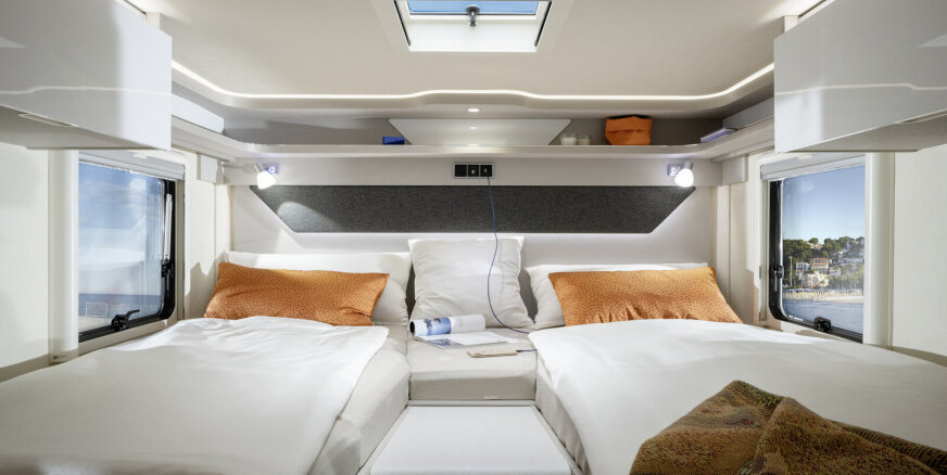 - Opuszczane podwójne łóżko nad częścią wypoczynkową z materacem z zimnej pianki (wersja elektryczna)