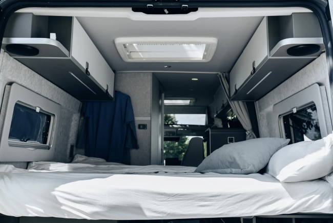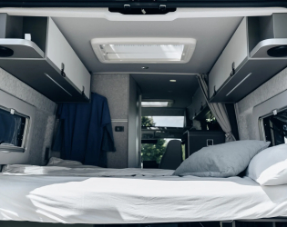 • Dach sypialny w kolorze pojazdu (podwójne łóżko maxi ze świetlikiem i elektrycznym zamkiem) (Kolor nadwozia Artense Grey jest dostarczany z czarnym podnoszonym dachem)