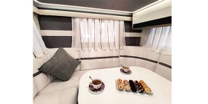 • Tapicerowane siedzenia kabiny materiałem użytym w części mieszkalnej