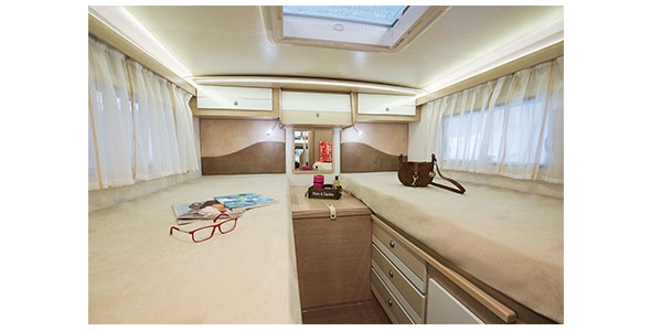 • Zmiana łóżka z pojedynczych łóżek tylnych na podwójne łóżko tylne (modele 690, 740)