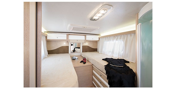 • Wbudowane 2-miejscowe elektryczne opuszczane łóżka we wszystkich modelach