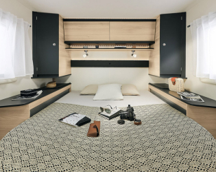 - Fotele w kabinie kierowcy dopasowane do tapicerki w części mieszkalnej - standard