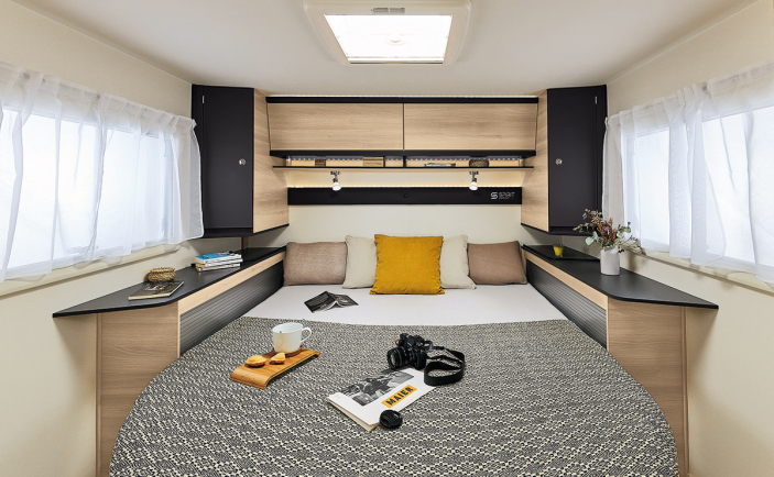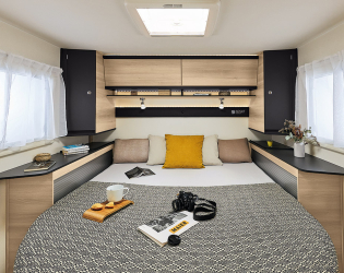 - Opuszczane łóżko nad kabiną kierowcy: 1400 x 1900
