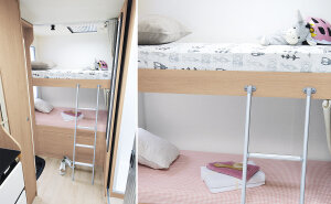 • Wspomagane podnośnikiem składane łóżko kabiny z podstawą listwową - standard