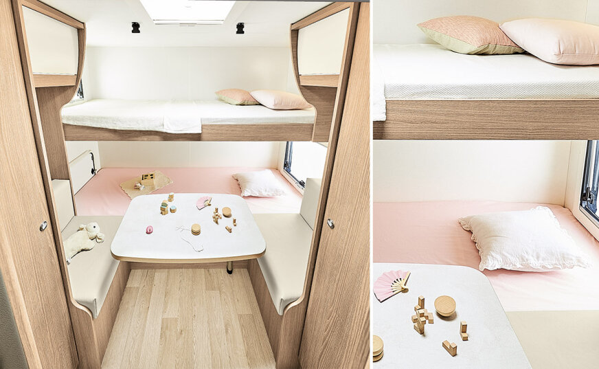 - 3-punktowe chowane pasy bezpieczeństwa (kabina i część mieszkalna) - standard
