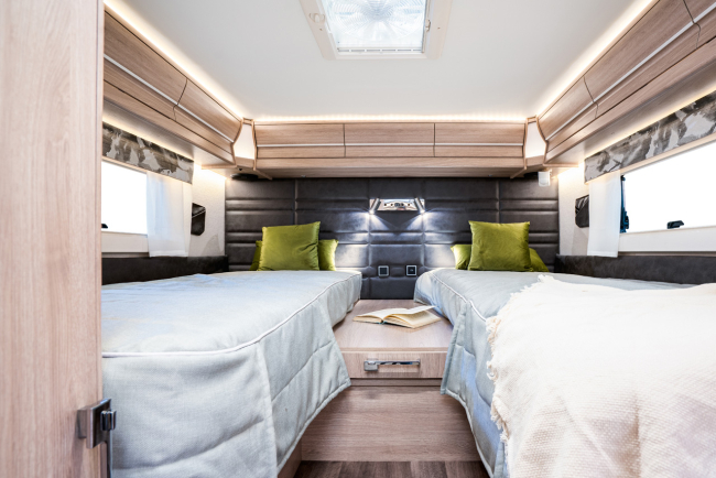 - Solidna przestrzeń ładunkowa znajdująca się w podwójnej podłodze naszych w pełni zintegrowanych kamperów ułatwia dostęp do bagażu.